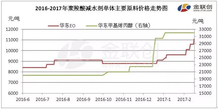 導(dǎo)語(yǔ):春節(jié)過(guò)后國(guó)內(nèi)聚羧酸減水劑單體市場(chǎng)大幅上漲,較節(jié)前收盤(pán)上漲1750元/噸,漲幅達(dá)15%,因原料環(huán)氧乙烷連續(xù)攀漲,且供應(yīng)緊張情況持續(xù)未有緩解,短期聚羧酸減水劑單體市場(chǎng)實(shí)單穩(wěn)步跟漲,上漲之勢(shì)延續(xù)!